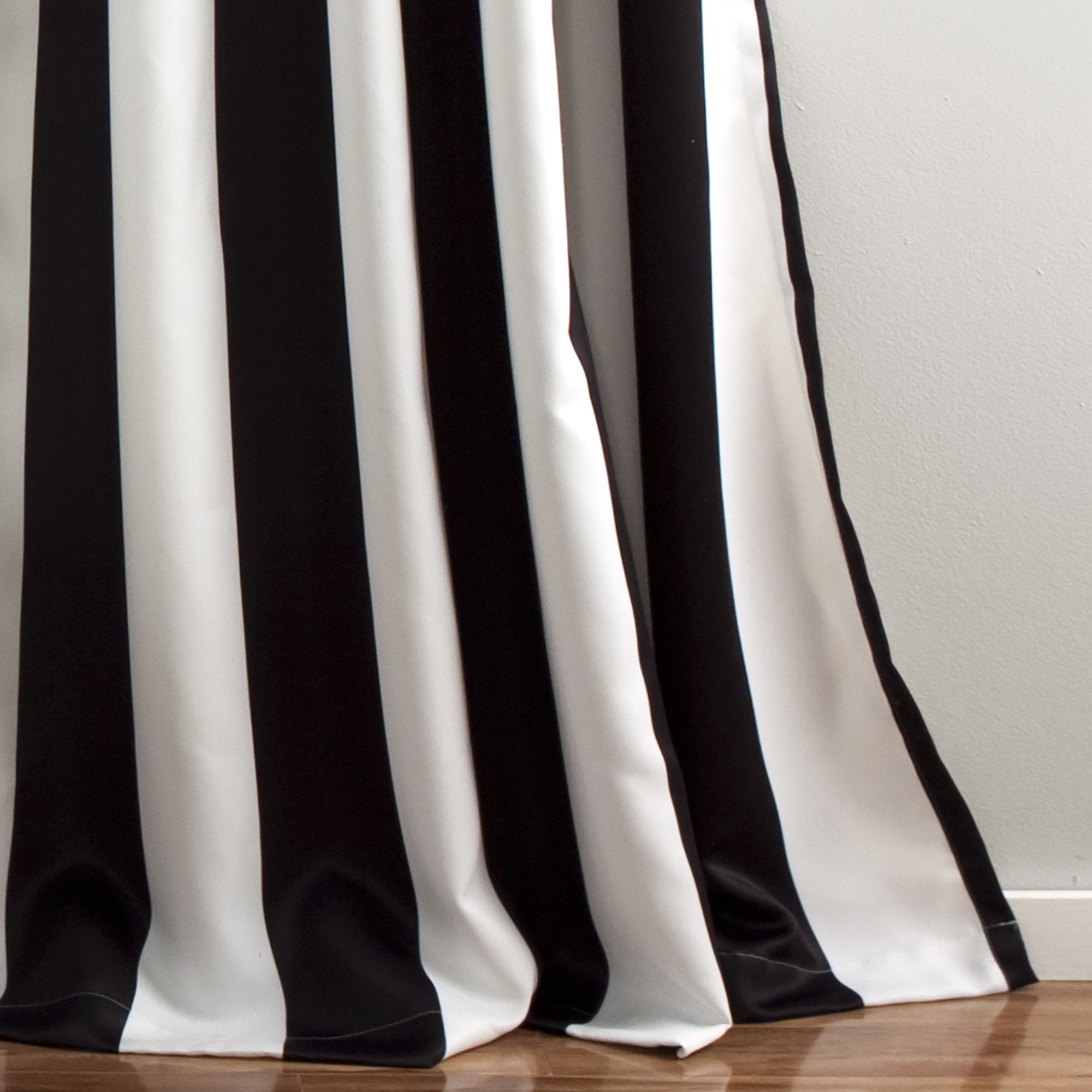 This Wilbur Stripe Window Curtain Set is great for all ages. The classic black and white stripes would work well in a nursery, teenager's room, a first apartment, a master bedroom, living room, dining room, or guest bedroom. The yellow and white striped version is also very versatile.