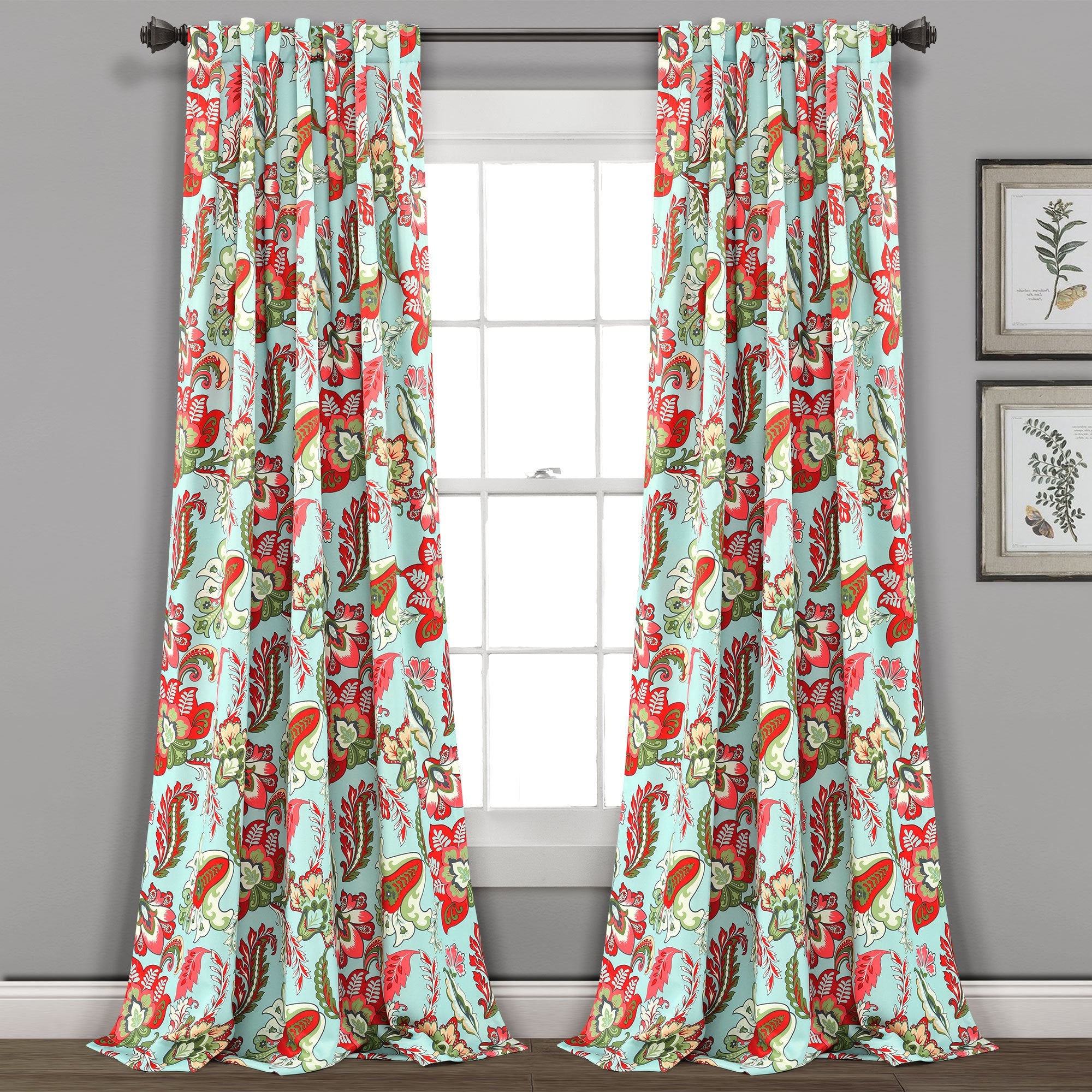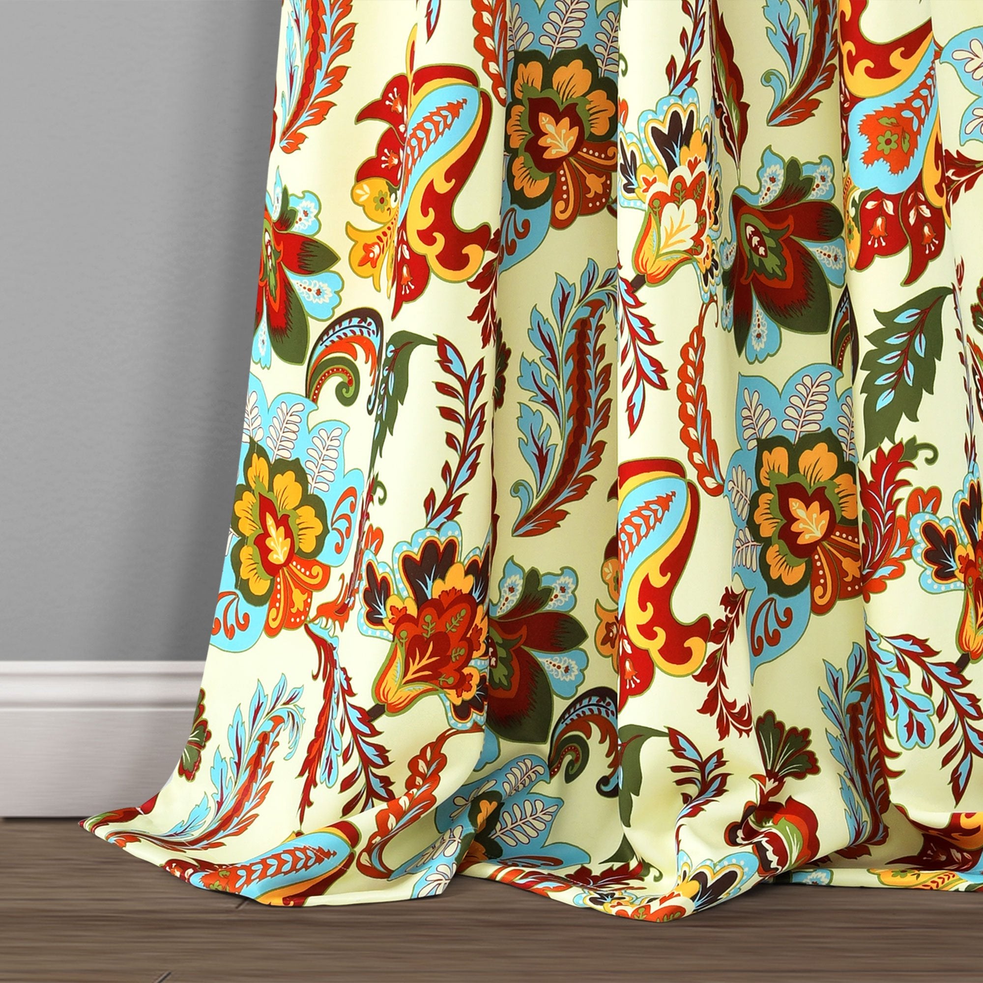 Give your space a bold new look with these bright and colorful window panels. Printed on light blocking fabric, this Zara Jacobean Room Darkening Window Curtain Panel Set will filter much of the outside light and noise, while providing a beautiful style to any room in your home.