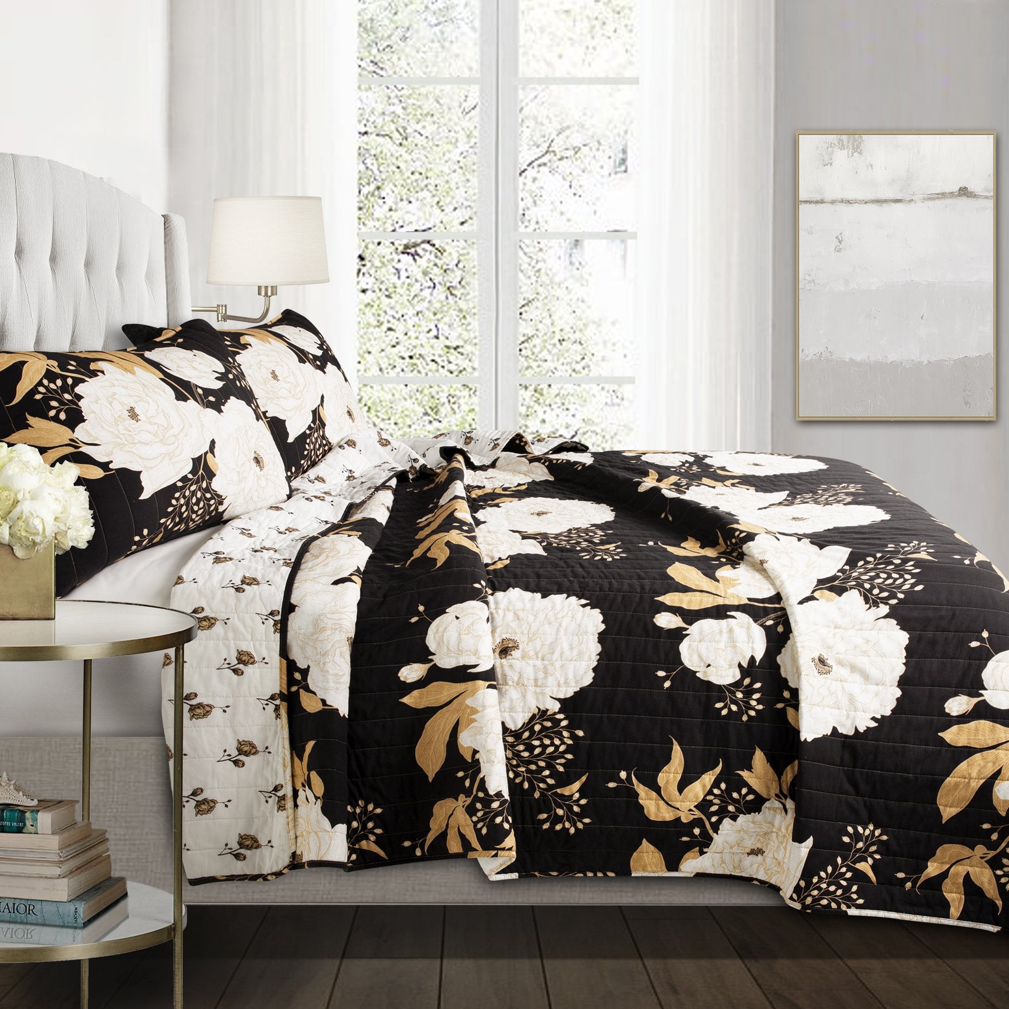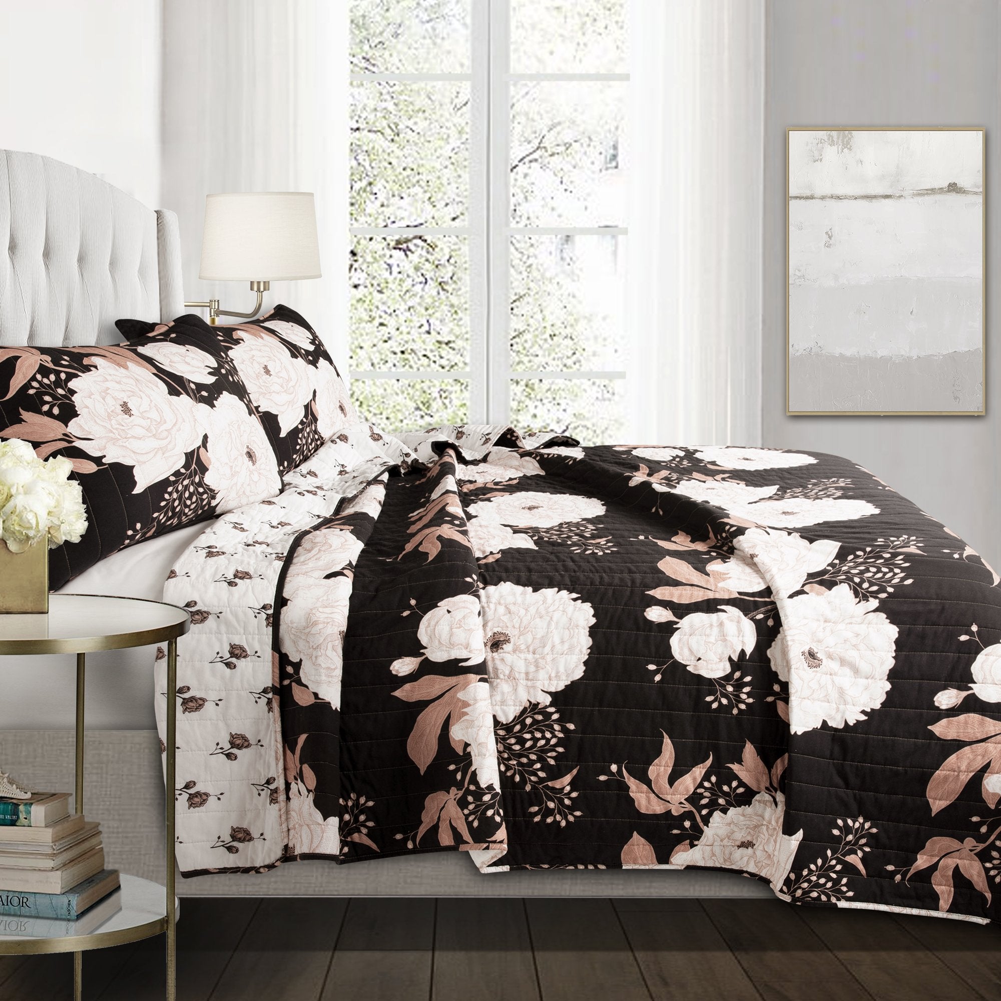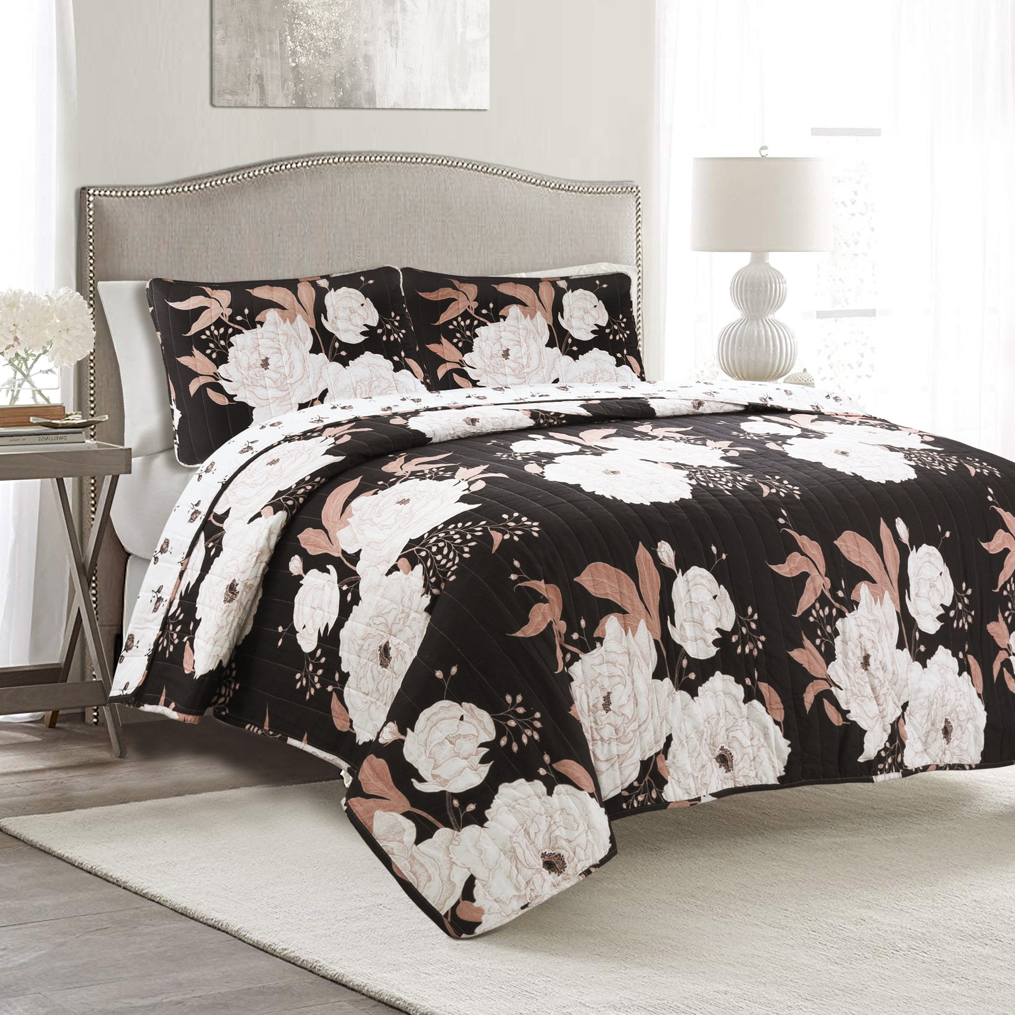 You are going to love this soft and reversible Zinnia Floral 3 Piece Quilt Set featuring a bold, yet elegant floral pattern on the front and a more subdued pattern on the reverse. The soft cotton fabric is very cozy and would look lovely in your master bedroom or guest bedroom.